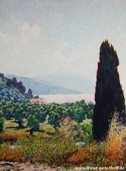 Athos, Zypresse im Gegenlicht ( Griechenland, Chalkidiki )