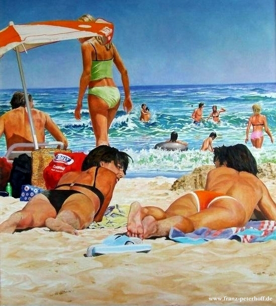 Strandszene: 2 Pariserinnen (Südfrankreich, Marseillan Plage)