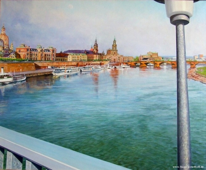 „Dresden, Blick von der Carolabrücke“ 2008, Öl/Leinwand, 80x100cm