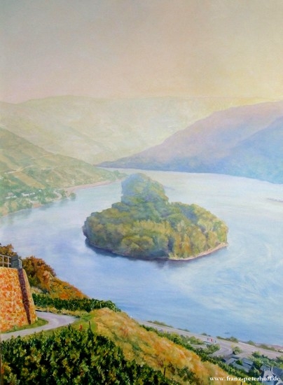 „Rheinsteig 1“ (Blick auf das Lorcher Werth) 2008, Öl/Leinwand, 100x70cm